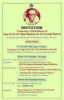 CENTENARY CELEBERATIONS OF PUJYA SRI SRI SRI VIDYA PRAKASHANANDA GIRI SWAMIJI_28-04-2013 TO 02-05-2013